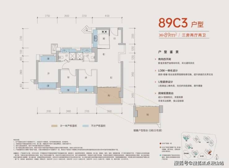 89C3户型 四开间朝南3房2卫