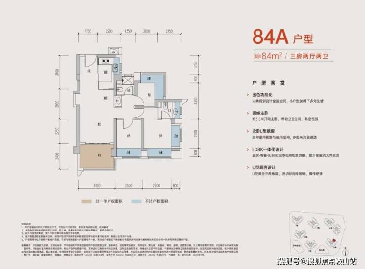 84A户型 3房2卫户型