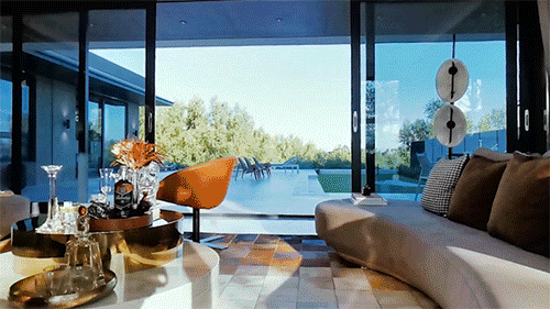 尤其是将厨房、房间放在外侧,不占用客厅面积,从而产生超长前后间距,加上落地窗的墙面设计,宽敞明亮的院子仿佛与四周的湿地连为一体,极具空间拉伸感。