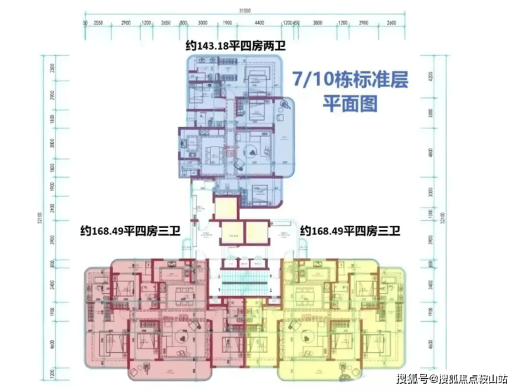 入门户型,面向首次改善型客户。四房设计满足多代同堂或居家办公需求,纯南向确保全屋采光。