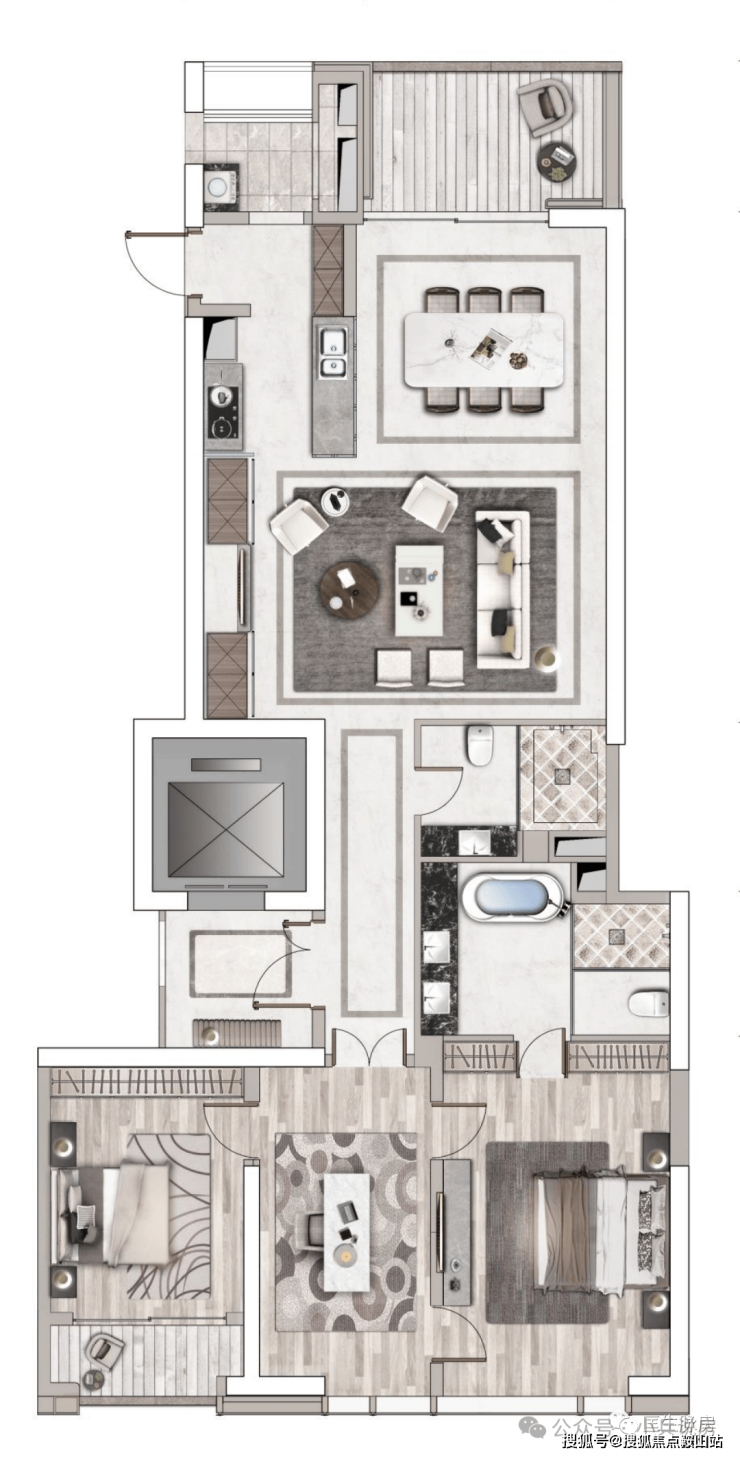 【建面220㎡3居】1900万-分布于A座 ,3梯2户,层高3.05米,总楼层65F
