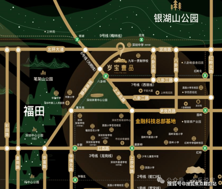 尽享自然景观与城市景观,北侧靠福田“大靠山”塘朗山山脉的银湖山,西侧靠近笔架山公园、深圳市体育中心以及南北贯穿福田的环中心公园,西南可以遥望繁华的福田中心区及平安大厦,东南遥望罗湖CBD。