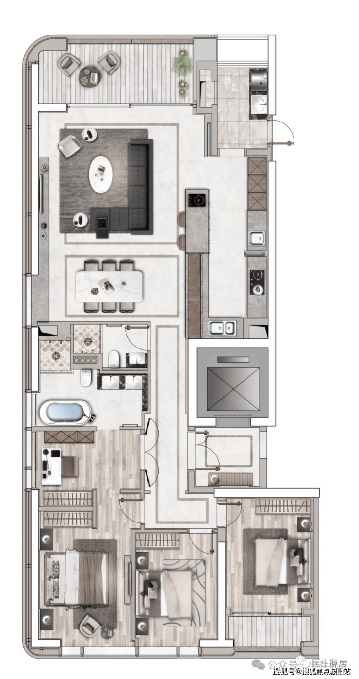 【建面200㎡3居】1800万-分布于A座 ,3梯2户,层高3.05米,总楼层65F