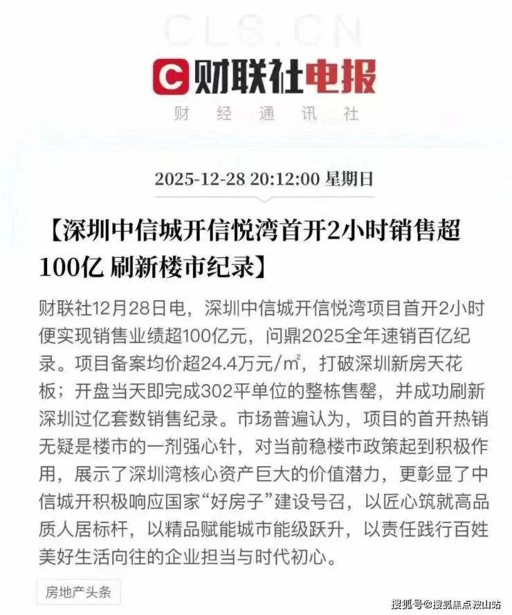12月22日,位于深圳湾核心地段的中信城开信悦湾(备案名:元湾府)首批单位获批,其备案均价高达约24.4万/㎡,最高单价触及38万/㎡,一举刷新深圳新房住宅有史以来的备案价纪录。