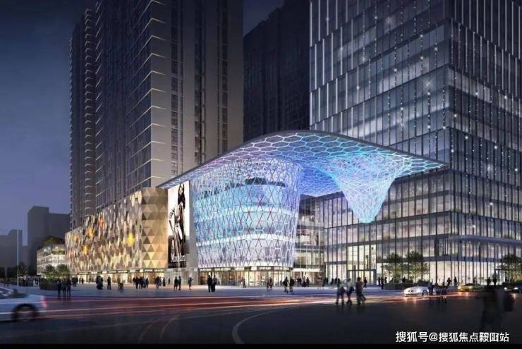 悬挑约16米的水滴造型,演绎自然灵动,独特、大小不等的六边形设计,与城市光影律动,呈现不同光韵和色彩,犹如璀璨迷人的“万花筒”视觉盛宴,筑造城市建筑美学新范本