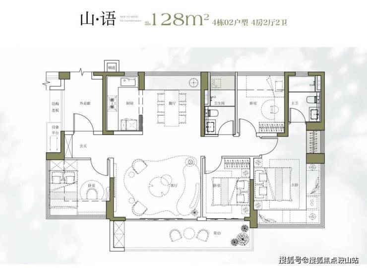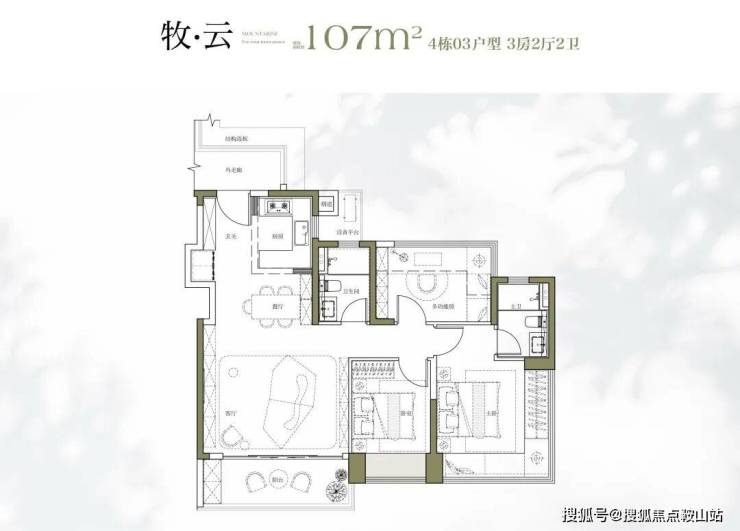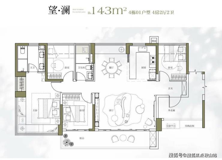 主力建面约107、128、143平,新规下使用率接近100%,除了建面约107平采用了竖厅约5米大开间朝南单面设计、其余2个户型采用南北对流设计,空间尺度与通透感拉满