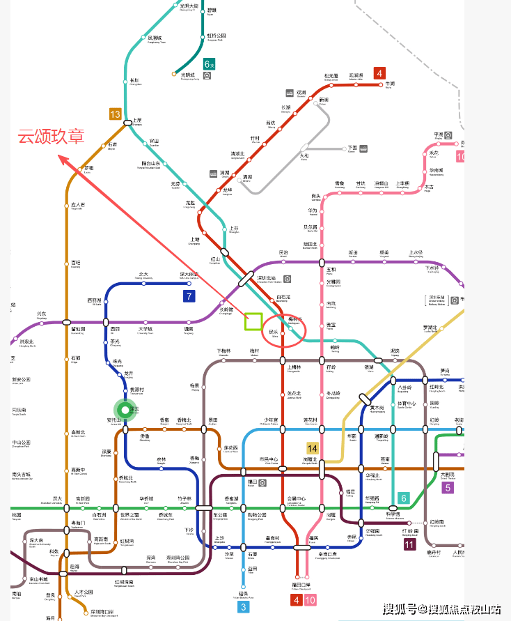 云颂玖章位置于梅林关门户,紧邻4/6号线民乐站,1站直达福田上梅林、4站直达市民中心、7站直达福田口岸、全程20分钟。民乐站往牛湖方向2站直达深圳北站交通枢纽可衔接5号线,全程6站快速直达西丽、7站直达留仙洞。全程20分钟,6号线可直达阳台山东、宝安、光明区域。因位置处于深圳中部枢纽地带交通方面非常占优势