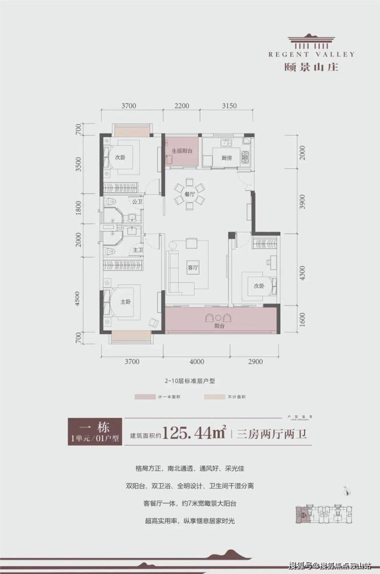 高赠送率、户户南北通透:小高层近95%实用率,公摊少、赠送多,高拓空间,性价比之王,户户南北通透,清风对流;4m客厅开间明朗,三面朝阳设计,延伸生活的幸福尺度