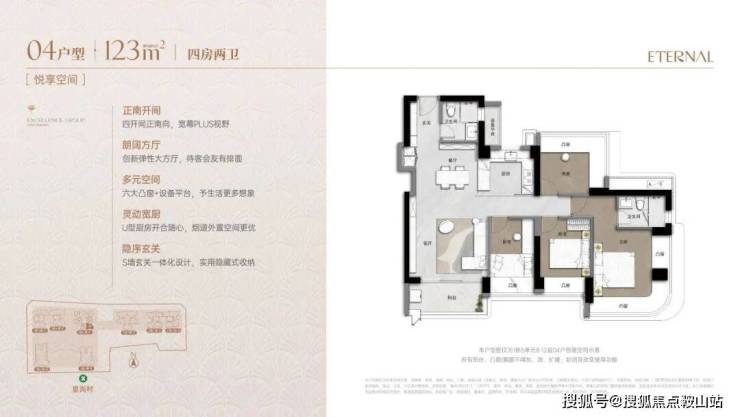 126平4+1房2卫,朝西,客厅南北朝向,(摩登永恒,摩登中古,打造生活的多样化)