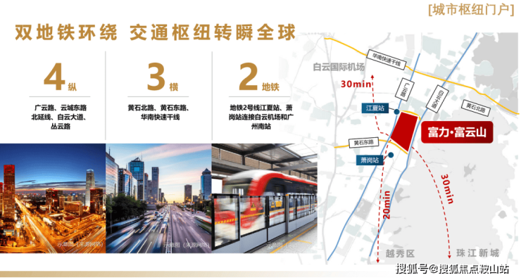 项目距江夏地铁站-C口679米,距离地铁萧岗站不到1公里,项目周边3公里范围内拥有双地铁线路,广州白云站也仅3.5公里,15分钟即可抵达越秀老城区,20分钟直达珠江新城。项目紧邻主干道和高速公路,无论是市内通勤还是省际往来,交通十分便捷。