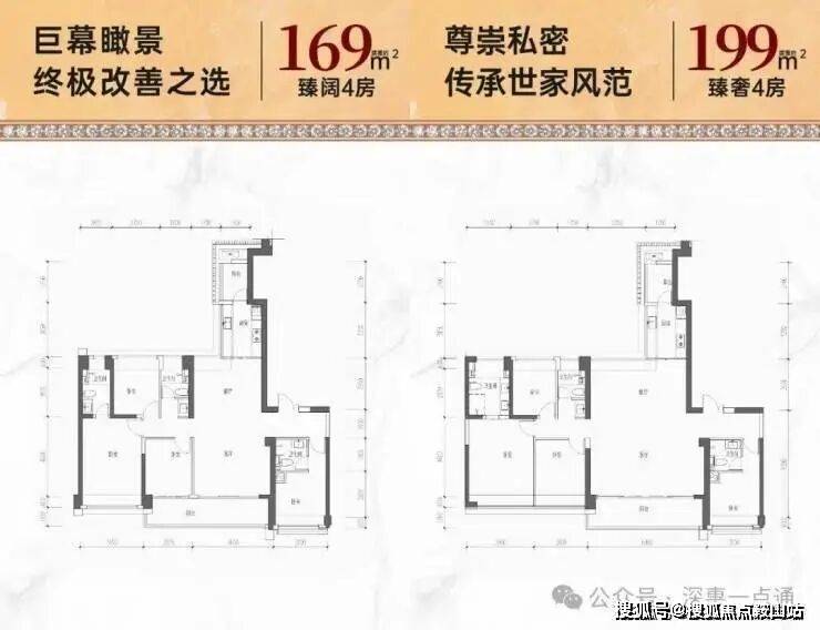 169㎡的4房2厅3卫,设计的是竖厅格局,2梯2户,专梯入户,独立入户玄关,客厅4.65米开间,LDKB一体化设计,四开间朝南,双主卧套间,4个卧室分别做到了主卧18.98㎡/套间12㎡/次卧9.35㎡/次卧9.04㎡(包含墙体飘窗),客厅连接次卧出7.47米长的大阳台,看花园全貌景观,二字型厨房带1个生活阳台,公卫三段式分离,得房率68.58%(不含赠送),正南朝向。