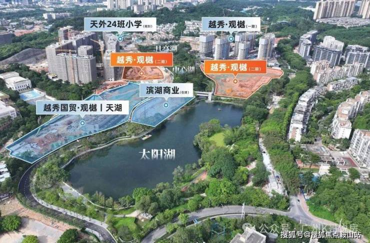 三面环山,片区及周边拥有丰富的山水资源,是天河东部重要的绿色开敞空间,水系包括太阳湖和月亮湖等2个人工湖,周边被钟岭、横岭、大山等自然山体环绕。