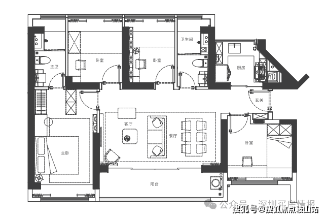 大横厅布局,超长观景阳台,卧室满面窗户,超强采光通风