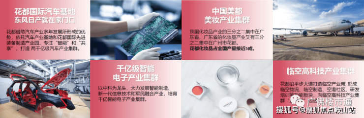 花都国际汽车城、千亿智能电子产业集群、花都美妆基地、临空高科技集群