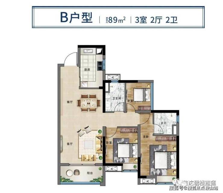 1、89㎡三房两厅两卫竖厅