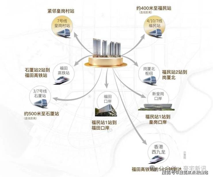 ·1站双口岸 ·2站福田高铁站 ·2站岗厦北枢纽 ·双地铁口 四地铁线