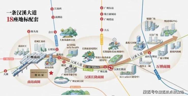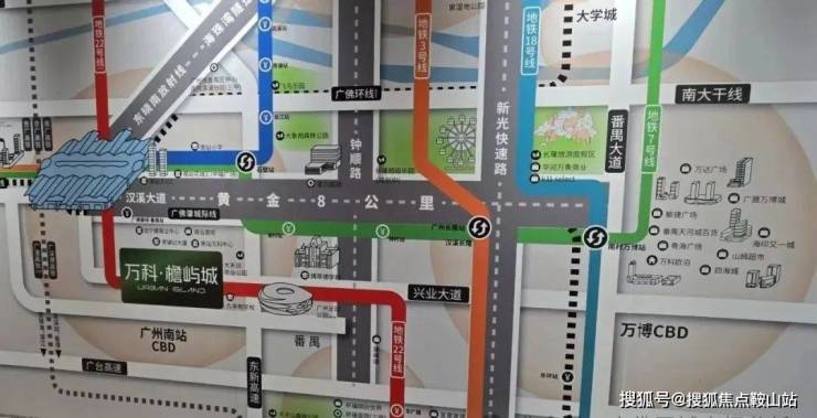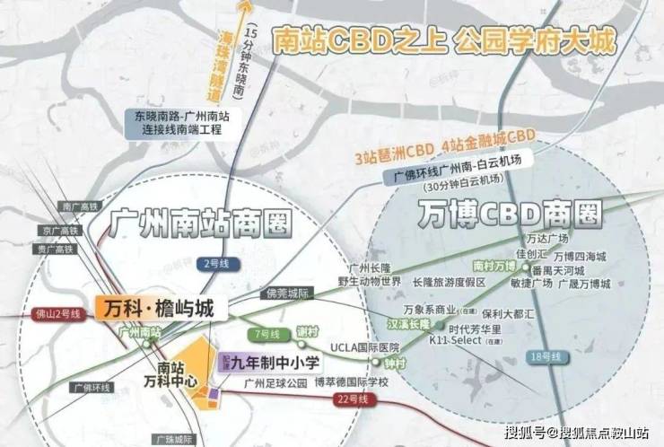项目距离地铁2号线、7号线、佛山地铁2号线、22号线,四线交汇的广州南站超级枢纽约1.7公里,6站到珠江新城,4站到海珠,4站到万博。