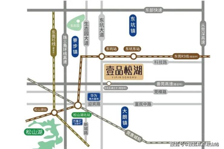 楼盘位于东莞市东坑镇东坑中学旁, 附近有轨道交通:R3线东坑站(规划中),,一站连通松山湖北站。在松山湖北站,R3线串联莞惠城际、莞深快轨、中虎龙城轨、R1线、深圳13号线延长线,未来将成为东莞乃至整个粤港澳大湾区最方便的交通枢纽之一。