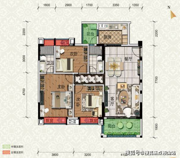 三房两厅两卫,实用率87%