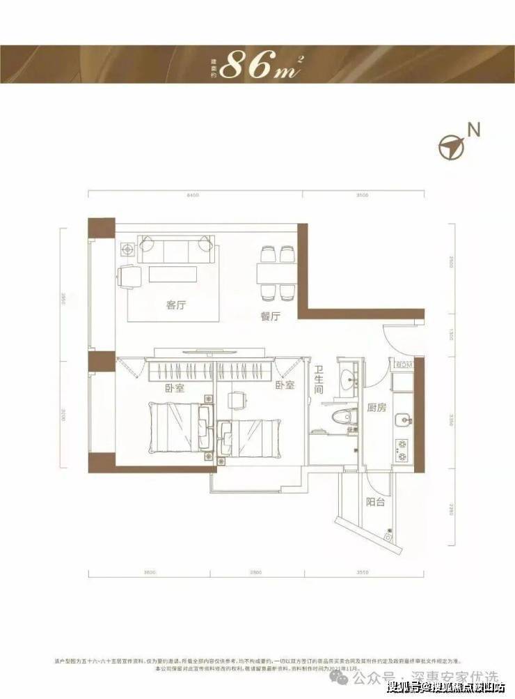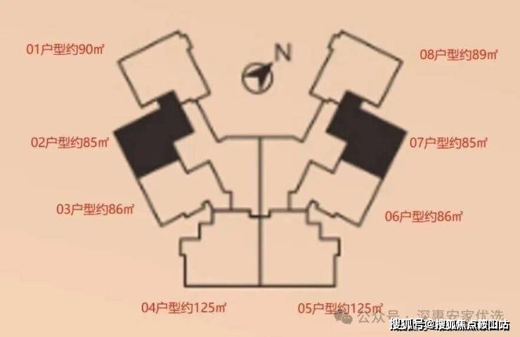 按高端住宅设计,主要户型为86㎡-125㎡2-3房户型为主,没有常规阳台、只有厨房生活阳台,还有现房在售。
