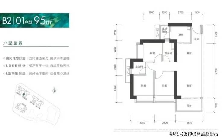 建面约95㎡三房两厅两卫