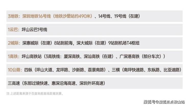 距离地铁16号线"沙里站"约400米,步行约5分钟可达,可直达龙岗中心城、大运枢纽,换乘14号线后30分钟内抵达福田 CBD 。周边还有云巴1号线"比亚迪北站"(约900米)、南坪快速出入口(约1.5公里),自驾出行便捷,1小时内可覆盖南山、福田等核心区域。
