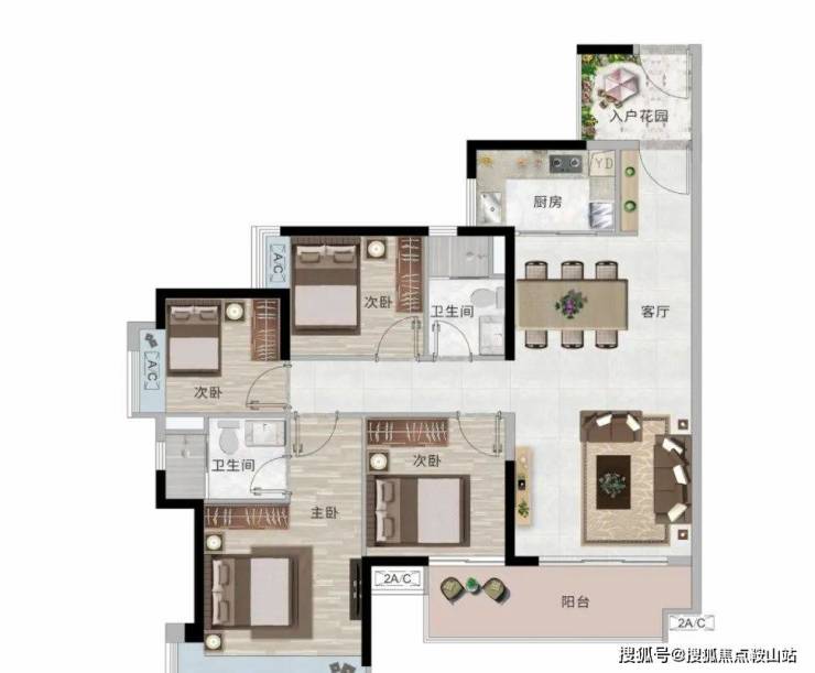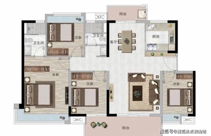 (↑约127㎡四房两卫·户型图&创意装修示范)