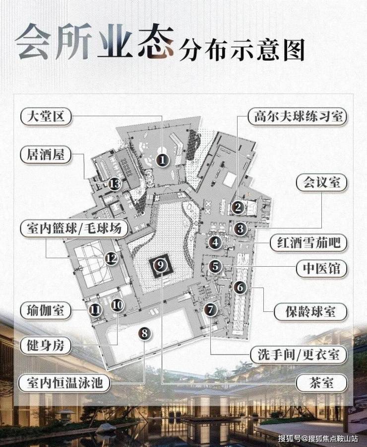 既有常见的恒温泳池、健身房、普拉提室,还有圈层专属配套,比如红酒雪茄吧、保龄球馆、室内篮球羽球混合馆、高尔夫练习室等,基本能满足日常所需。