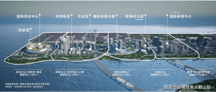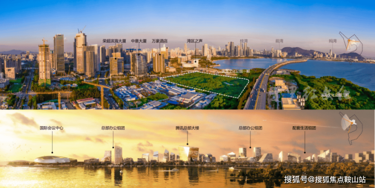 西侧对望腾讯“互联网+”全球总部,即“企鹅岛”,位于深圳宝安区前海大铲湾岛,占地约130万㎡。