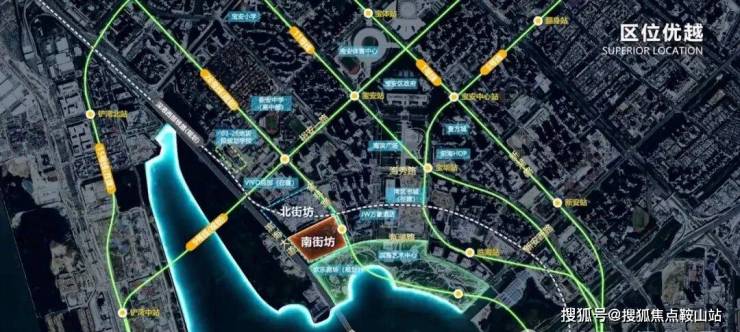 南街坊地块位于宝安中心区,紧邻沿江高速,坐拥湾区书城、湾区之光摩天轮、青少年宫、图书馆、滨海演艺中心、欢乐剧场等市级文化地标,与腾讯全球总部企鹅岛仅一水之隔。