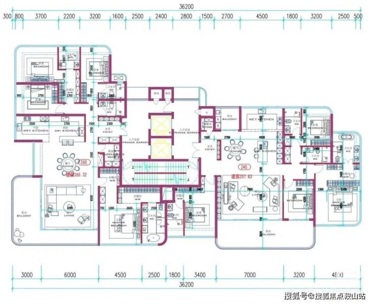 「观潮府」推出143-168-190-254-250-265-332-488㎡的4房以上户型。