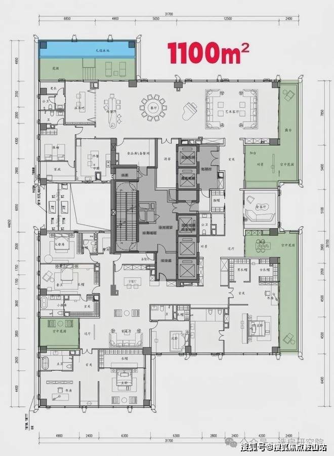 · 1050㎡顶奢大平层:位于顶楼的Penthouse,堪称深圳住宅的巅峰之作,堪比世界级豪宅。