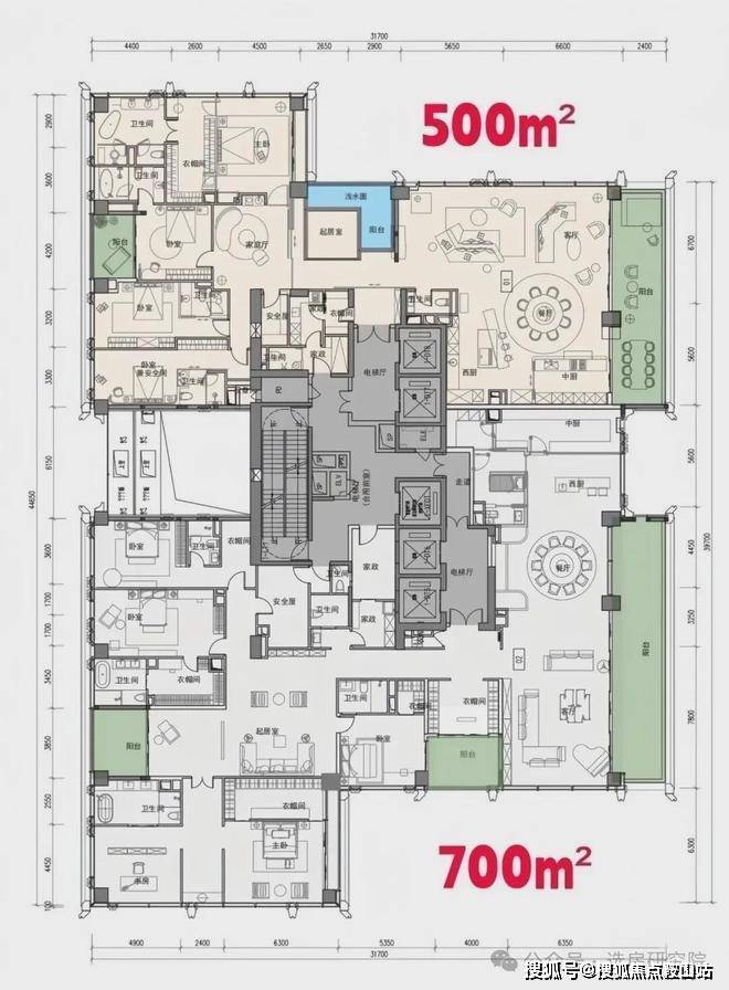 超高区(58层起,200米以上):约500-700㎡顶级大平层。