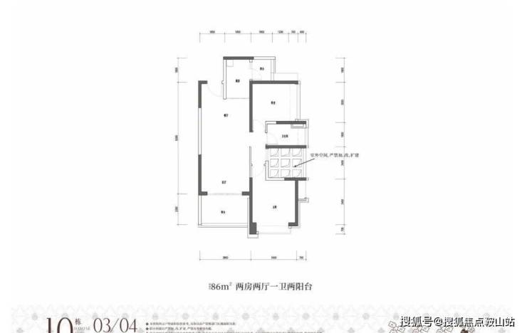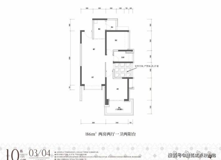 10栋03/04户型,建面约86㎡,原始结构是两房两厅一卫两阳台,奇数层和偶数层都是卧室出阳台,主卧与公卫中间有一块镂空的地方,搭板的话改个三房没啥问题。
