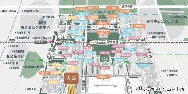天宸(佳园)项目位于深圳市福田中心区滨河大道与民田路交汇处东北角,东边是会展中心,东北面能看见平安金融中心大楼,西侧是发展兴苑东区,南邻滨河大道,北临星河国际。总的来看,项目处于绝佳C位!