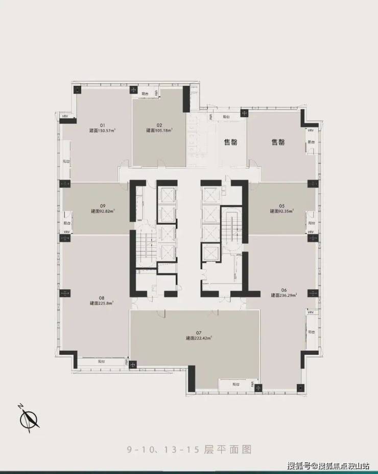 项目主推的是约93-236㎡的4.5米层高云端公馆,特点是通燃气、带阳台,在公寓产品里比较少见。