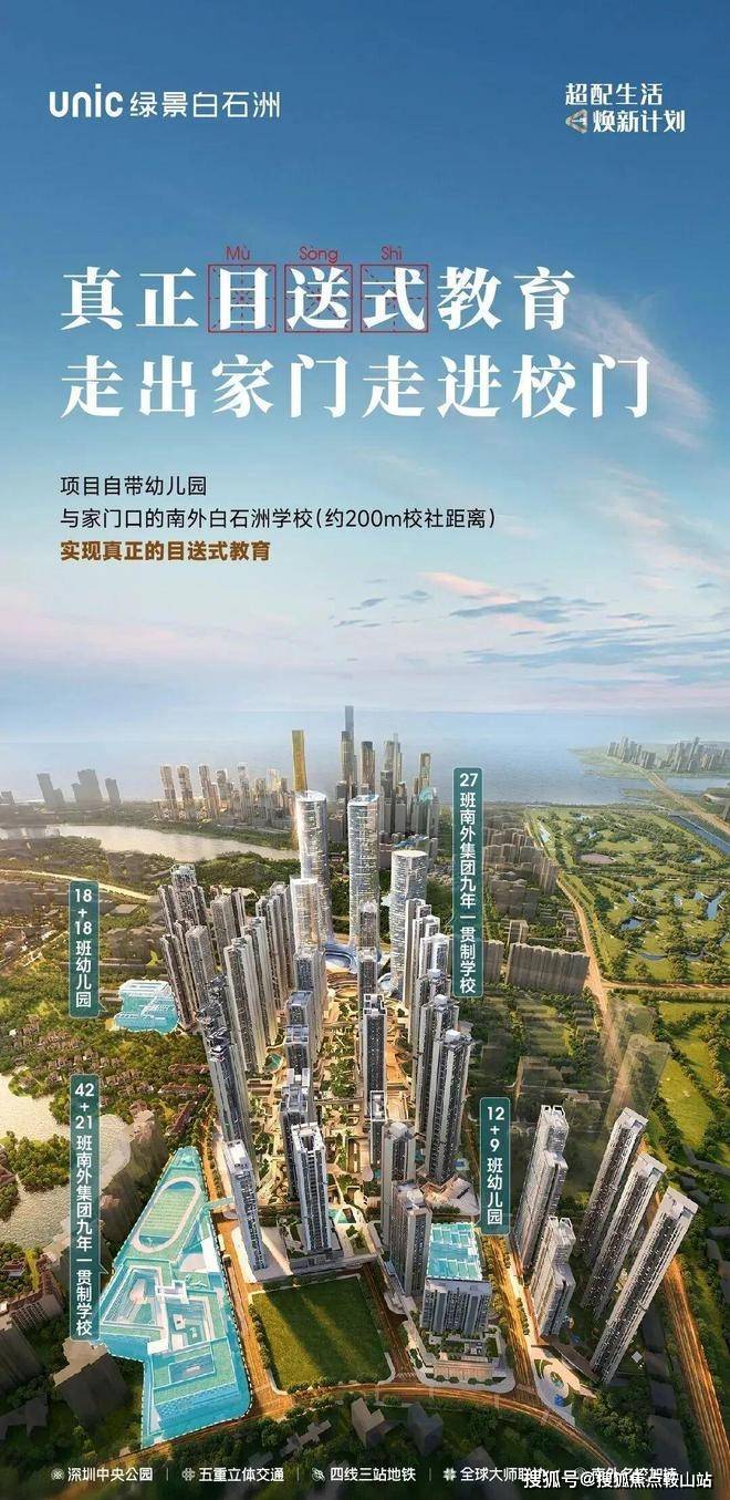 绿景白石洲南山外国语学校中标设计方案已确定(深化完善中),是南山外国语学校集团班制规模最大、规格最高的学校。且与大城首期约200m步行距离,真正的接送换目送;学校竣工计划与首期入伙同步(以最终政府落定时间为准);片区生源优质纯粹,精英氛围浓厚,城区居民子女起步即与精英同步。