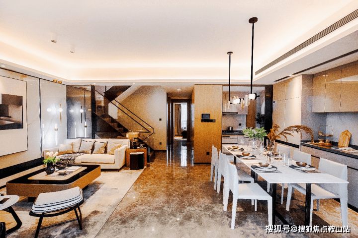 一层是近70㎡的私家花园,及会客厅及1间南向卧房,二层是餐客厅厨房及1间卧室,三层是休息区共有3间卧室。