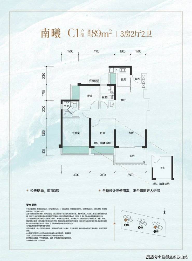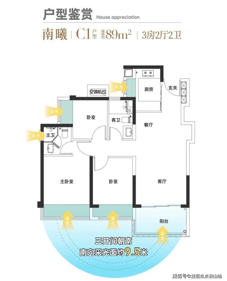 C户型 | 建面约89㎡三室两厅两卫:经典实用