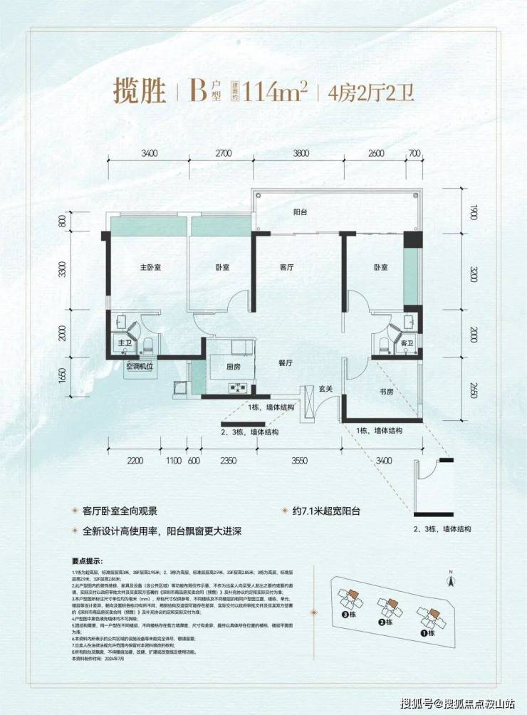 B户型 | 建面约114㎡四室两厅两卫:双龙抱珠户型