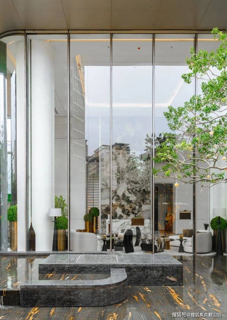 在大花白奢石接待台的对面,还以国际大牌软装家具打造了大堂等候区,兼顾人性化、尊贵感和功能性。