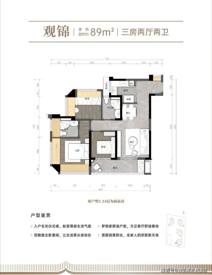 面积有80-89㎡的3房2厅2卫,107㎡的4房2厅2卫户型,对比之前多了一个89㎡横厅3房2卫。项目分栋交付,3/5栋2026年底交付,1/2栋2027年中交付。