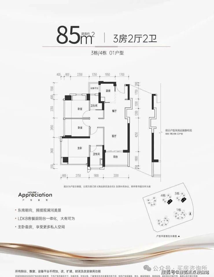 【户型面积】约75-85㎡3房2卫,约94-105㎡4房2卫