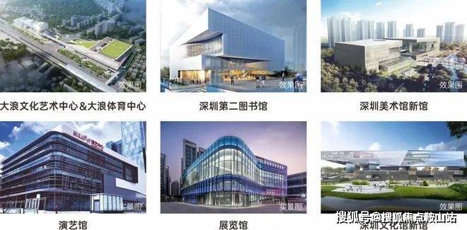"五馆一体,双子星文体中心建设中,约1公里范围享受大浪文化艺术中心和体育中心;约10公里范围连接深圳第二图书馆、美术馆新馆、演艺馆、展览馆和龙华市政四馆,简上体育综合体、深圳书城和龙华文体中心。"