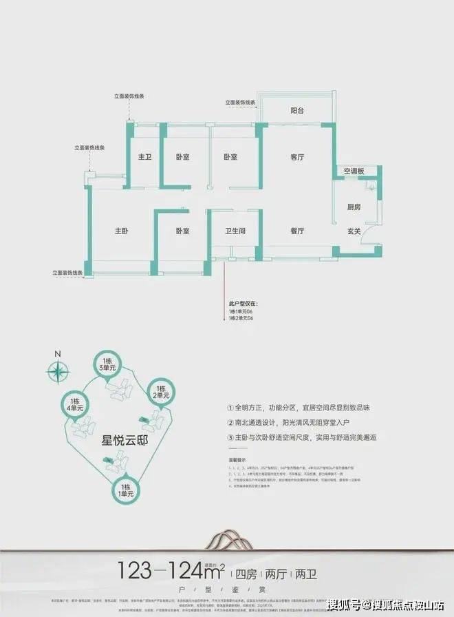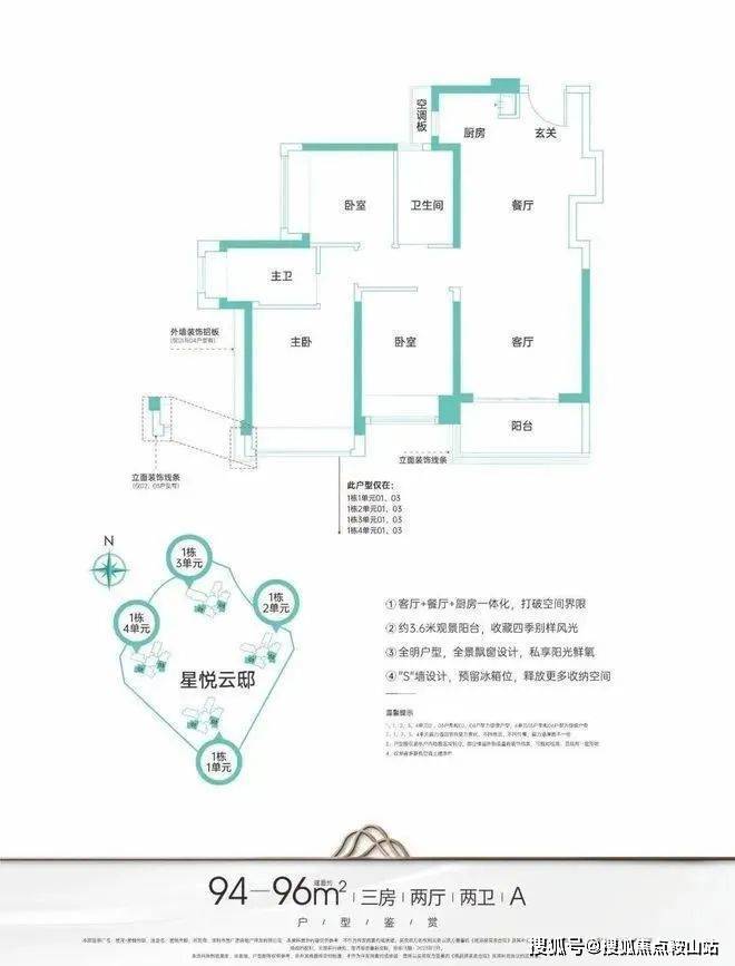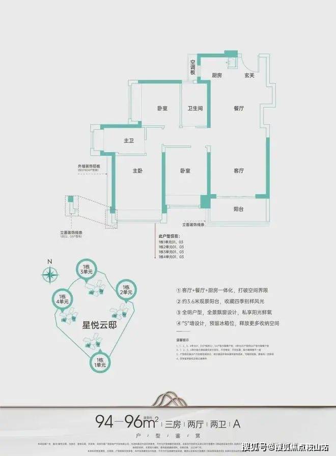 主力户型建面约95-124㎡臻品三至四房,