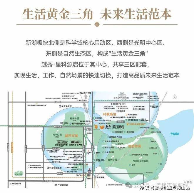 越秀星科源启坐落于光明区新湖街道光侨路与科学大道交汇处东南侧,地处光明中心区板块,堪称占据了科学城发展的黄金风口。这里北邻光明科学城装置集聚区,南接产业转化区,是整个科学城的“心脏”所在,未来价值增长潜力不言而喻。