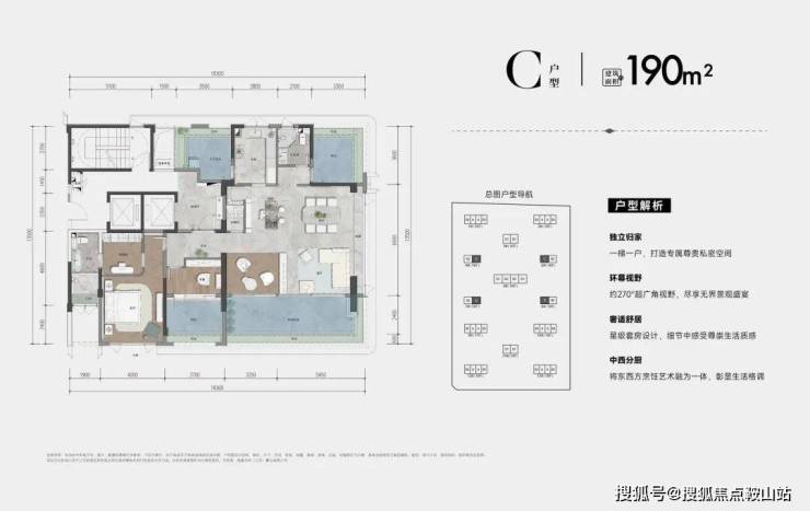 户型鉴赏建筑面积约:130-229m²湾芯环幕大平层纯板楼设计,南北通透,全明采光最宽楼间距约87米层高约3-3.3米270°巨幕观景视野灵动百变空间格局亲海现房全交付,现在买现在住,即享海居生活