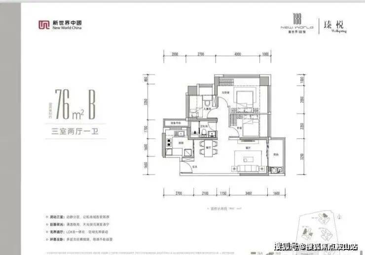 作为深圳首批新规住宅,得房率最高约104%,远超传统住宅75%-85%的水平,同等面积多一房,省钱又实用。- 76㎡三房一卫:总价248万起,刚需上车首选,小面积实现功能性三房,适配三口之家。