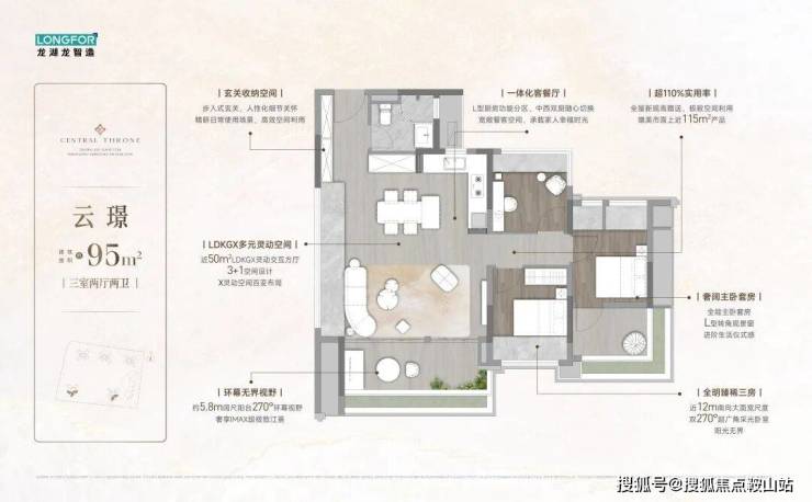 建面约95–139㎡环幕瞰江奢宅
