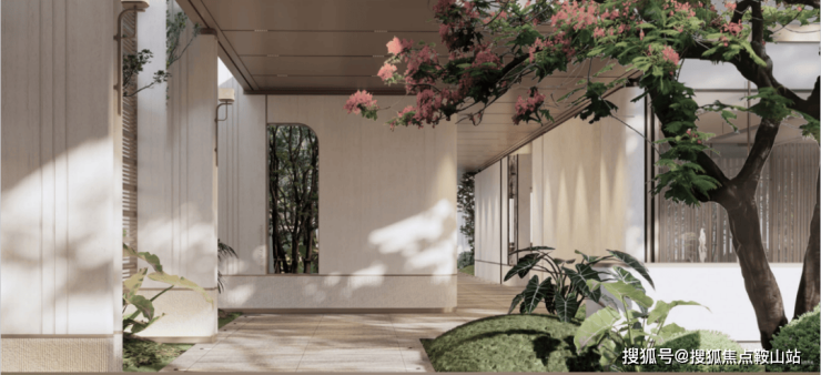 约160m林影游廊,串联大堂与室内会所,步步归心。